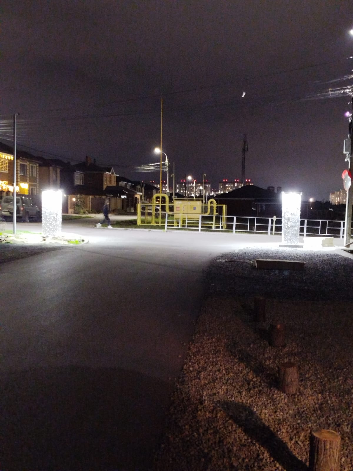 благоустройство ул. Северная колонны на въезде с табличкой и подсветкой