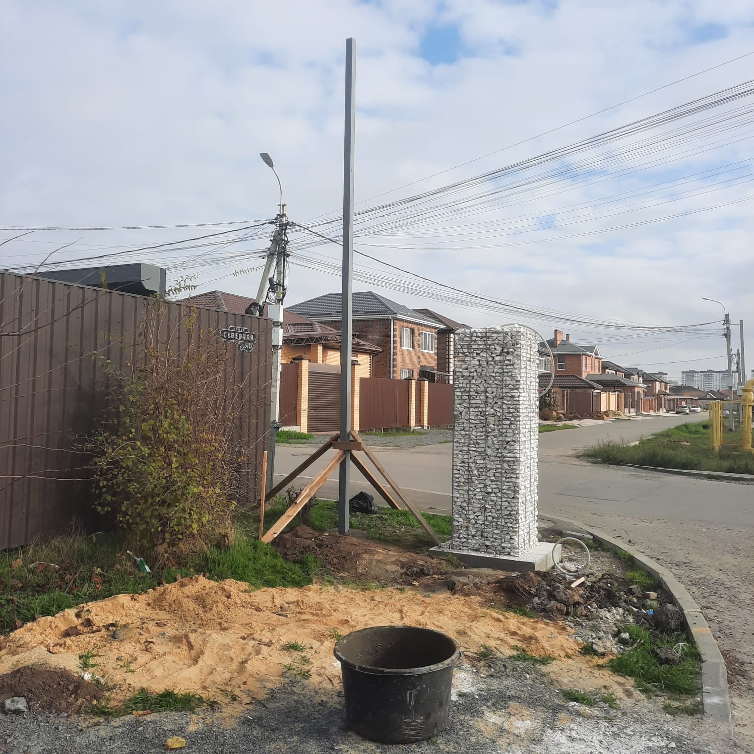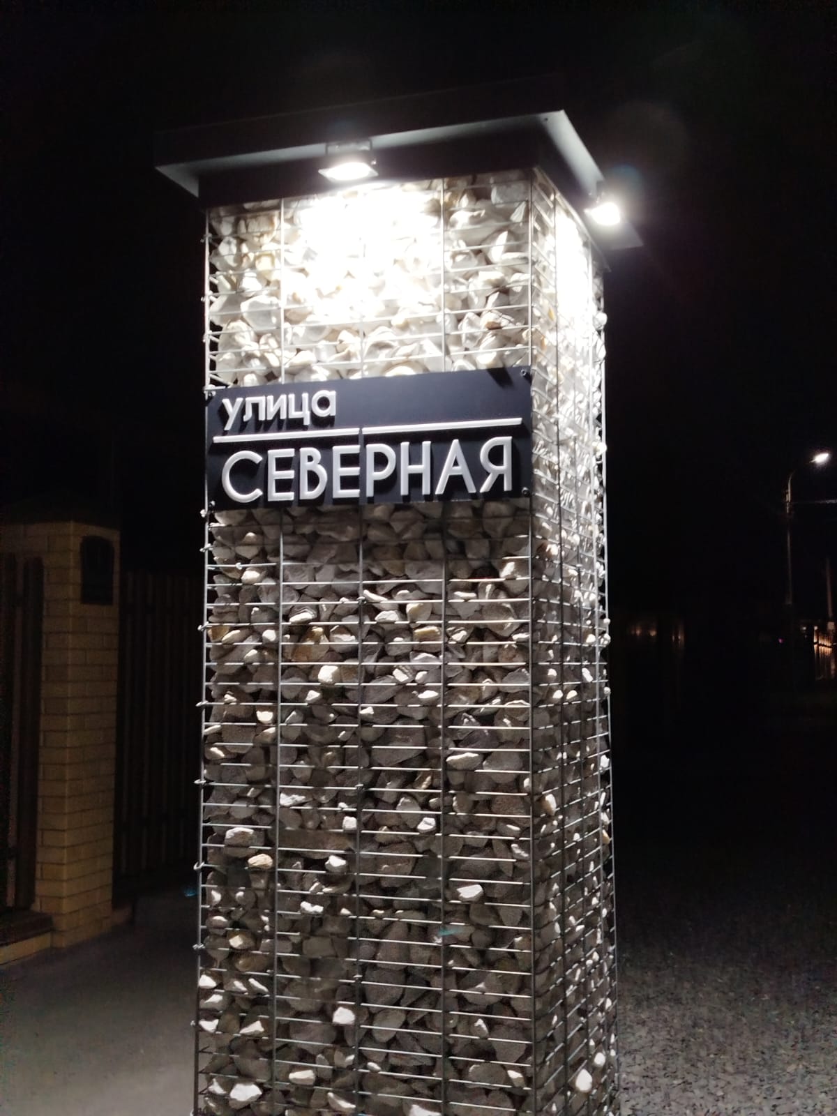 благоустройство ул. Северная колонны на въезде с табличкой и подсветкой
